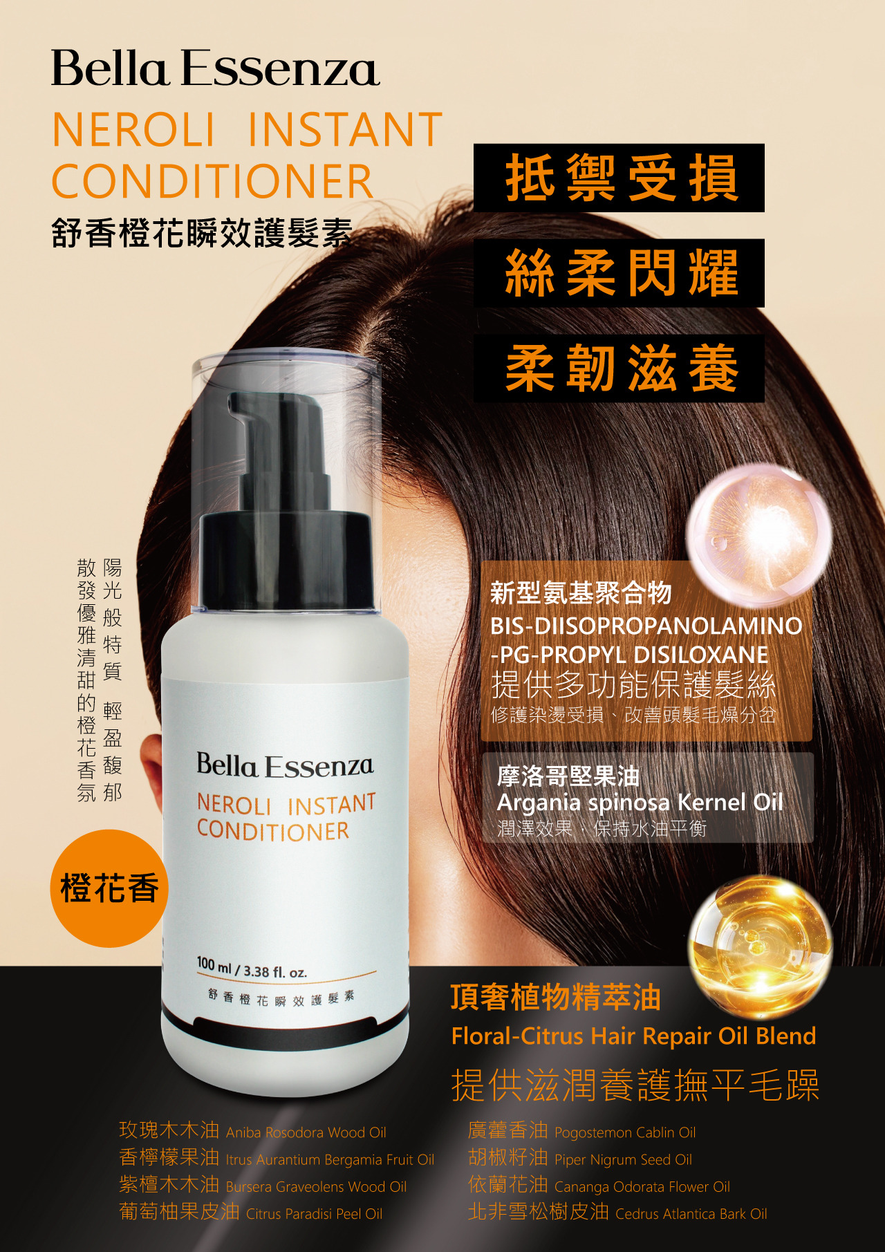 品名:【Bella Essenza】舒香橙花瞬效護髮素 100mL
